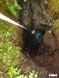 Sur le moment on n'ose pas y croire, mais bien que l'ouverture soit modeste car en grande partie obstruée par des troncs pourris, on devine quand même un trou bien noir. L'excitation est à son comble et après avoir enlevé quelques troncs, on se rend à l'évidence que cette fois c'est vraiment un puits digne de ce nom. |
