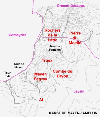 zone de lapiaz surmontée d'un troisième sommet, la Tour de Famelon (2137m).
