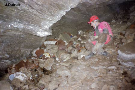 Base de la pente d'éboulis à l'orée de la Salle du Chaos