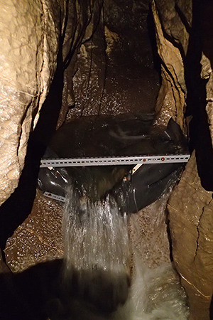 Petit contrôle du barrage pour les mesures de débit en cours