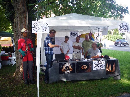 Dès 8h du matin, montage du stand avec Philippe qui nous amène la table et les bancs. Nous restons ensuite toute la journée à disposition des personnes qui viennent fréquenter le marché puis vers 18h, et juste avant un gros orage, Philippe nous rejoint avec son bus afin de démonter le stand et de ranger le matériel au local.