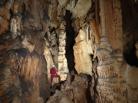 Côté spéléo, le but principal était une visite guidée dans la Grotte de St-Marcel d’Ardèche. Cette longue balade de plus d’une dizaine d’heures, depuis l’entrée touristique avant de ressortir par l’entrée naturelle, a permis de parcourir le Réseau I pour ensuite cheminer jusqu’au fond du Réseau IV où une partie nécessite de franchir de nombreux passages verticaux. Ce fut une journée bien remplie avec des paysages souterrains à couper le souffle.Grotte de St-Marcel – Réseau I