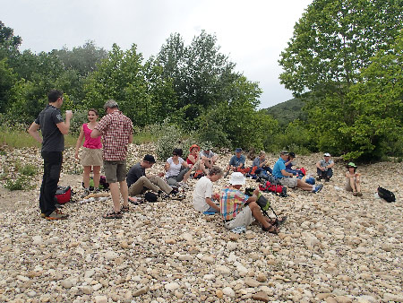Comme nous étions logés dans des bungalow à proximité de la Cèze et que la météo était estivale, nous avons pu ainsi profiter amplement de la rivière pour des baignades ou faire du canoë. Ce séjour a aussi permis de faire du tourisme, des randonnées, des repas gastronomiques et de nombreux apéros improvisés dans une ambiance fort sympathique.Apéro au bord de la Cèze