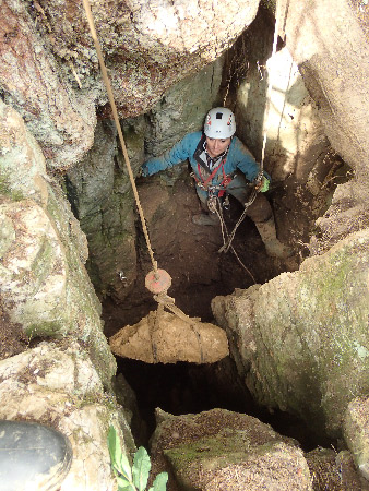 En arrivant sur place nous constatons que l’ISSKA est venu récupérer tous les ossements que nous avions entreposés à l’extérieur. Un gros boulot en perspective pour eux afin de les déterminer !Si il y a toujours beaucoup de glaise, nous retrouvons cette fois à nouveau des gros blocs ce qui permet d’avancer un peu plus vite et de continuer à ériger un mur autour de l’entrée.L’équipe du jour