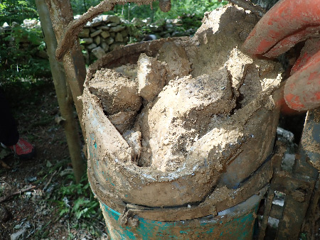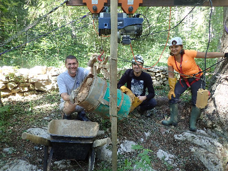Do, Philippe, Michaël, Alexandre et JackEt encore une nouvelle séance de désobstruction, de moins en moins facile car toujours plus profond, mais aussi toujours plus étroit. Le premier tonneau de la journée