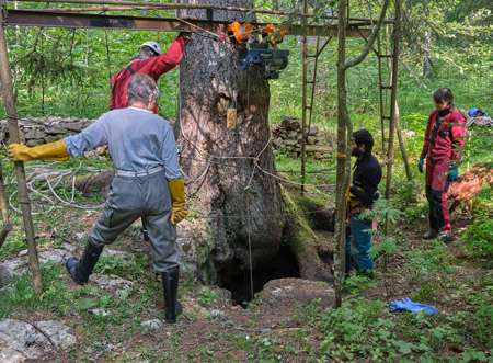 Cette journée a permis de ressortir 11 tonneaux. Et ce jour là, il y avait un net courant d’air … bon signe ?Un spéléo vraiment bien éclairé … c’est notre sapin de noël …