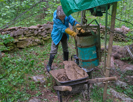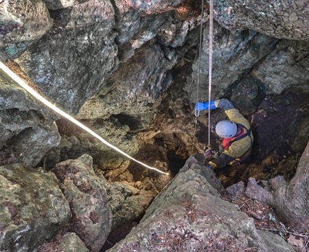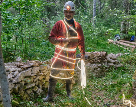 Et pour cette journée, Patrick a amené un long ruban avec LED qui permet d’éclairer tout le puits (on doit être vers 29 m de profondeur) qui devient ainsi bien plus sympathique …