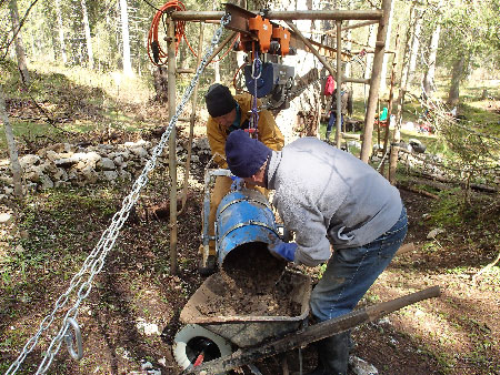 Première séance pour l’année 2016 avec un treuil qui est maintenant réparé et son câble rallongé à 20m. Le travail est cette fois pénible car quasi pas de cailloux mais de la glaise très collante qui demande autant de temps pour remplir le bidon que pour le vider.