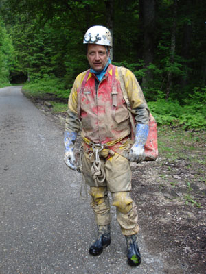 Au mois de mai, cette baume nous livre enfin son secret après 3 ans de désobstruction mais deux sorties seront encore nécessaires pour consolider la base du puits d’entrée.Le 8 juin 2008, c’est enfin le grand jour de la première. Après le P14 d’entrée, une fissure verticale (P3) est suivie d’un P7 où une pente glissante donne sur un joli P20 aux belles dimensions. A sa base, il faut patauger dans un lac de boue (la désob. a laisser des traces !) avant de s’enfiler dans un conduit suivi par deux P6 dont le deuxième est très *gluant » (argile et mondmilch). On arrive alors à un très beau P30 dont le fond est malheureusement terminé par une fissure impénétrable. Dans ce P30, il y a quelques lucarnes donnant sur des petits puits parallèles mais aucune autre suite.