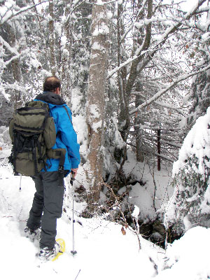 Nous profitons ce jour d’un enneigement assez satisfaisant pour aller faire une séance de prospection dans la région du Bois de Vaulion qui est dans la zone d’alimentation de la Venoge. Entrée du Gouffre du Bois de Vaulion
