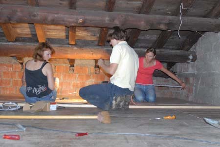 Corinne, Coralie et Jennifer : pose du plancher à l’étage