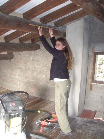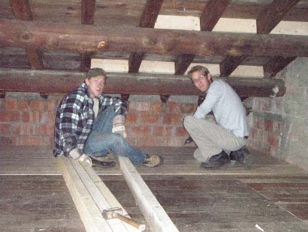 Bastian et Vivien : pose des carrelets pour le futur toit