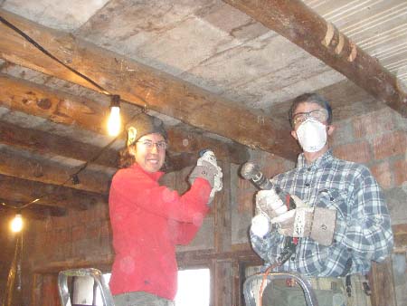 Laure et Gilles au ponçage du plafond