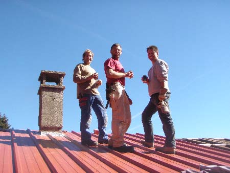 Patrick avec les deux charpentiers (Stéphane et Blaize)