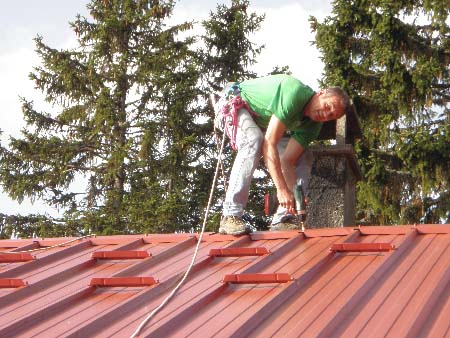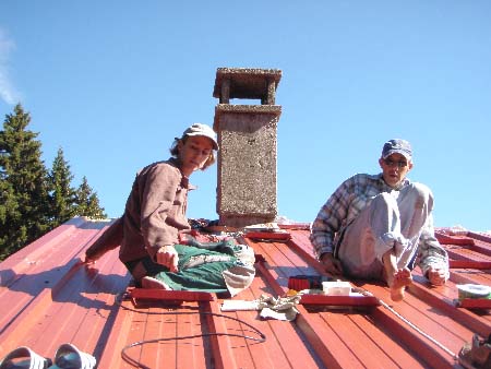 Marc et Philippe posent la tôle sur-faîtière