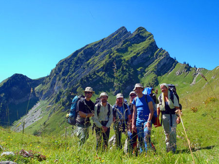La grotte du Dragon, au pied des falaises du Vanil des Artses en Gruyère, titille les Folliu-Bornés depuis un certain temps déjà. Lors de la dernière expé, un méandre haut et très étroit avait stoppé les explorateurs au sommet d’une grande salle. Ce méandre est l’un des objectifs principaux du camp Folliu Borna 2012, vu le fort courant d’air qui en sort.Pour monter au Dragon, il faut commencer par réparer la via ferrata « spéléo » ou être très courageux. Les avalanches et les chutes de pierres sont redoutables : une corde est sectionnée et certains serres-câbles cassés. En arrivant à la grotte, la rivière d’air froid coulant de l’entrée plonge rapidement les explorateurs dans l’ambiance souterraine du Dragon. Après quelques trémies, des étroitures où siffle le courant d’air, des cheminées et d’autres obstacles, l’équipe désob s’attaque au terminus. Le passage est rapidement pénétrable et la première peut commencer. Après un court ramping, le spéléo débouche au pied d’une grosse cheminée. Les beaux volumes du Dragon sont de retour. Cool ! La grotte reprend aussi sa remontée vertigineuse. Une première escalade délicate sur une étroite vire siliceuse, suivi d’une deuxième en faisant une opposition à la Jean-Claude Van Damme, conduisent les explorateurs vers l’inconnu. Anne-Cécile et Pierre reviennent de la pointe le sourire aux lèvres pour annoncer la bonne nouvelle. Il y a une nouvelle salle et ça continue avec de nouvelles escalades et de jolis méandres. Incroyable !Pendant ce temps, une autre équipe s’intéresse aux écoulements d’eau. L’eau est précieuse pour les alpages et celle coulant dans cette cavité pourrait s’avérer très utile. Il faut savoir que le chalet de Chenau, où nous faisons nos camps, est déjà alimenté par l’eau d’une grotte. Afin d’en savoir plus, Florian nous a développé un débitmètre à godets. Le chalet d’alpage est transformé en laboratoire d’électronique, Pascal sortant son fer à souder et Florian son multimètre, afin de régler les derniers « détails ». Tout est rapidement fonctionnel et le capteur est transporté bien profondément dans la montagne. Un barrage efficace y est construit afin de récupérer le filet d’eau coulant à l’étiage. Les scientifiques du jour sont enthousiastes à chaque basculement du capteur. Il est cependant déjà temps de regagner la surface.L’expé suivante permet d’équiper certains passages trop aériens et surtout de poursuivre l’exploration. La suite semble cependant compromise en arrivant sous une impressionnante trémie, avec des plaques de plusieurs tonnent défiant la gravité et les spéléos. Une nouvelle expé est nécessaire pour franchir cet obstacle. Les spécialistes ès trémie, Jacques, Gilles, Pascal et notre géologue Anne-Cécile, jaugent la trémie. Aucun souvenir d’un empilement aussi instable ! Impossible à désobstruer ! Fort heureusement, une nouvelle escalade permet de court-circuiter ce bouchon. La suite est un peu chaotique, avec une rampe dans des strates inclinées à 40 degrés, un peu comme celle du Gecko, mais à la taille du dragon de Komodo. La montagne a du bouger depuis la fin du creusement de cette grotte, car par endroit les parois sont transformées en empilements de blocs. Miraculeusement, le passage reste possible jusqu’à une nouvelle salle, où plutôt un gros méandre. Deux suites sont entrevues dans les plafonds. La première est escaladée en artif par Gilles et Pascal, mais elle devient impénétrable. Après une escalade vertigineuse, les funambules du jour, Luca et Anne-Cécile, trouvent la suite tant espérée dans la deuxième, à une douzaine de mètres de hauteur. C’est parfois bien agréable d’être un simple topographe. Une nouvelle salle est découverte, avec une montagne comme explosée de l’intérieur. Il y a beaucoup de vide, mais aussi des blocs monstrueux. Pas facile de trouver la suite de la cavité ! Après cette belle première, les spéléos sont contents de retrouver le plancher des vaches.C’est la dernière expé du camp. Ca commence à devenir franchement long d’atteindre le terminus de la grotte. C’est bon signe. Depuis la salle terminale, une galerie spacieuse part sur le côté et un méandre ventilé, aux dimensions modestes, continue droit devant. Nous suivons le courant d’air, notre fil d’Ariane depuis de nombreuses sorties. Malheureusement, ce méandre devient rapidement trop étroit. Les désobeurs, se remettent à l’action. Pas de problème ! Pascal, Gilles, Anne-Cécile et Jacques ont bonne mine et le reste de l’équipe, Florian et Michel, la motivation des grands jours pour terminer la topo. Arrêt sur une suite prometteuse, mais obstruée, à +225 mètres de dénivellation. Incroyable ! Cette dernière expé du camp se termine comme d’habitude aux aurores, avec un magnifique soleil sur la Gruyère, les Préalpes et notre via ferrata.Un camp génial, dans la vraie ambiance spéléo, avec assez de découverte pour en rêver jusqu’à l’année prochaine. Tristesse !Gilles, Pierre, Jacques, Anne-Cécile, Luca, Pascal, Florian et Michel, des Folliu-Bornés du SCMN, GSL, SCPF, etc. ont participé au camp 2012.Une partie de l’équipe pose devant les Artses