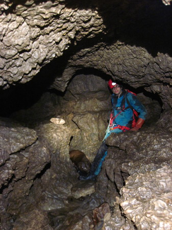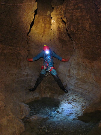 Philippe + Felix* : nous nous rendons au « Raduno », le congrès national italien qui a lieu a 1h de voiture de notre hôtel. Après avoir cherché des informations sur les excursions pendant un long moment, on finit par apprendre que les cavités sont juste équipées, mais qu’il n’y a pas de tours guidés pour celles-ci. On se débrouille pour s’inscrire pour le Samedi pour la grotte de SU Palu (soit disant la plus belle de sardaigne, pour laquelle il faut un permis). On finit par décider de rejoindre une des deux seules expéditions guidées, à savoir la (petite) grotte d’Orbisi, où est proposée une excursion à caractère géologique. 2 horaires sont proposés. Pour le premier on est trop juste, mais pour le second ça devrait jouer. On se dirige vers le lieu de rendez-vous. Ayant un peu de temps devant nous, on s’arrête à un « parking » un peu plus tôt le long de la piste (car on ne savais pas à quel point il y aurait de la place pour tout le monde au bout du chemin), et on mange. On continue ensuite à pied vers le lieu de rdv, qui était finalement un peu plus loin qu’on ne pensait. On arrive avec 5-10 minutes de retard, et on ne trouve personne. On essaye de se diriger vers la grotte pour essayer de rattraper le groupe. Au bout d’une demi-heure de crapahuter, on finit par croiser un gros groupe en tenue hétéroclite. Il s’agit en fait du premier groupe, le second n’étant sensé partir qu’une heure plus tard (ce qui ne correspond pas du tout aux infos affichées au rassemblement). On poursuit donc seuls jusqu’à la grotte, où on fait rapidement le tour de la grotte (une grosse perte dans un canyon). Au moment de ressortir, on croise le second groupe, et on apprend qu’on a raté un passage. Philippe décide d’aller rapprocher la voiture pendant que je refais la visite avec les géologues. Les explications sont uniquement en Italien (que je ne parles absolument pas), mais j’arrive quand même à grappiller quelques informations.Le soir, Nicoleta nous rejoinsJour 8 : vendredi 28/04/2019Anna* + Thomas : canyon d’OrbisiLe canyon d’Orbisi (le même canyon dont nous avons descendu une petite partie, deux jours auparavant), est relativement court et agréable. Ses points forts sont: quelques escalades difficiles pour sortir des marmites pièges (aidé par des cordes fixes, mais pas du tout facile), et une belle mais extrêmement courte section souterraine (avec nage obligatoire, très rafraîchissante). Avant la confluence avec Flumineddu, nous sortons par le sentier balisé et rejoignons enfin le même sentier raide que nous avons utilisé pour sortir de Donini.