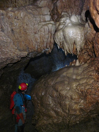 On arrive ensuite dans une longue galerie surcreusée, qui semble être active en cas de forte pluie.