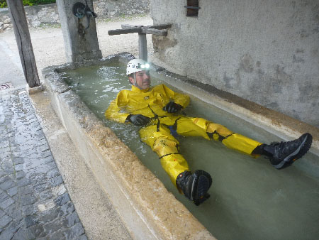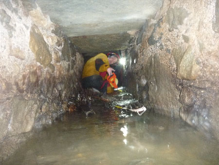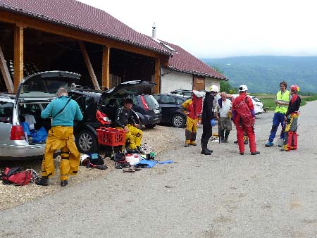 Après une première sortie au mois de Janvier, nous avons du attendre plus de trois mois et la fin des crues avant de pouvoir continuer les relevés dans le canal souterrain d’une commune du canton de Vaud.Grâce au nombre de personnes présentes, nous pouvons nous diviser en trois équipes : une pour la partie amont du canal, une pour la partie aval et enfin une dernière pour les mesures UGPS-2 et divers travaux en surface comme s’occuper du système de ventilation par exemple.Préparation des équipes