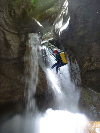 Par cette belle journée de printemps, suite à une semaine de mauvais temps, l’occasion était trop belle pour aller se rafraichir dans ce joli petit canyon proche de St-Claude (France).Seulement cinq minutes de marche d’approche nous amène à cette cascade de 20m arrosée à souhait …