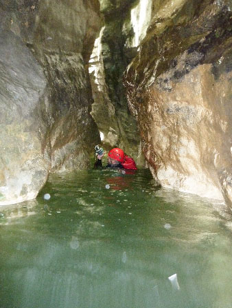 Le canyon se divise en trois parties étroites entrecoupées de deux zones plus large. Voilà à quoi ressemble la dernière partie étroite … Avec cette photo, on comprendra que c’est dangereux de s’y aventurer en crue !