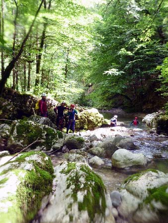 Suite aux deux premières cascades suivies de quelques sauts, nous arrivons dans une partie plus large magnifiquement arborisée avec de beaux effets lumineux.