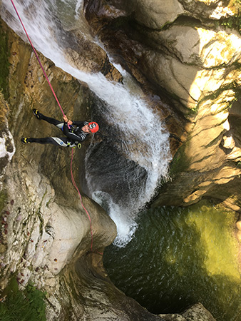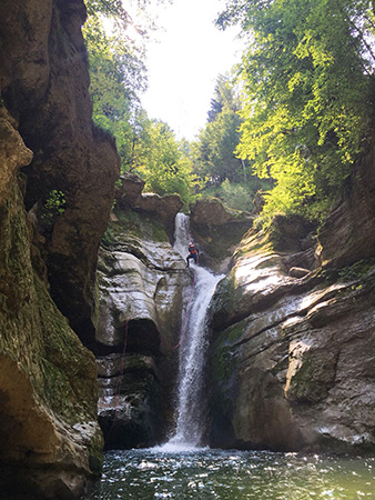 Sortie familiale dans ce joli canyon près de Saint-Caude (département du Jura), donc proche de chez nous. Le débit était faible et comme la température de l’air était caniculaire, l’eau était agréable. Seul danger de la journée, gros orages prévu en fin d’après-midi alors on est sortis avant et arrivés à la voiture on a eu droit à la pluie.