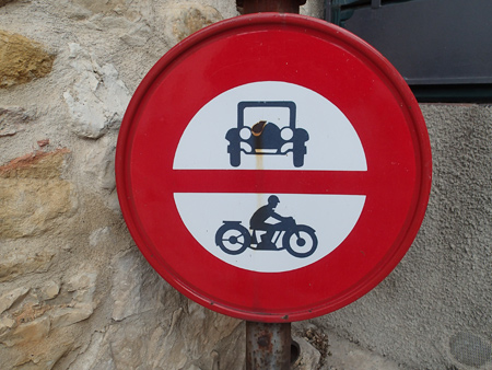 Les panneaux de circulation du village sont eux un peu moins moderne !