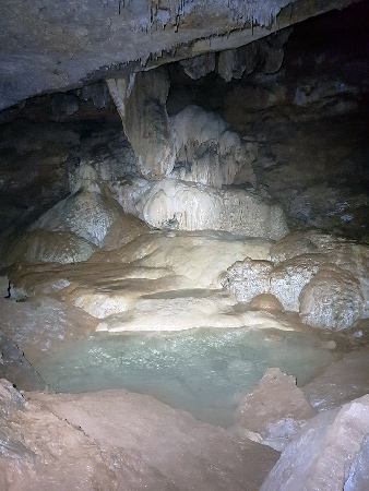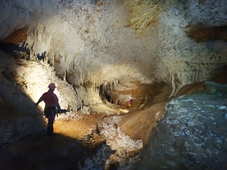 Aven de NoëlDeux personnes ont pu se joindre à 4 personnes du SC-Cheseaux qui organisait la visite. Merci à eux, c’était cool. Après la partie verticale d’entrée (P30-P90), le cheminement dans les longues galeries magnifiquement concrétionnées a été un émerveillement.