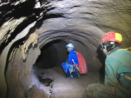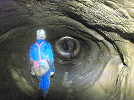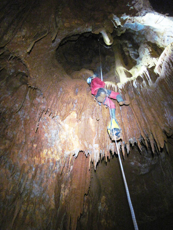 Aven ArmediaAprès un petit couloir, un puits d’une quarantaine de mètres