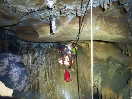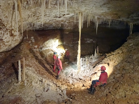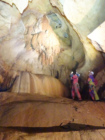 Aven des PèbresJoli gouffre concrétionné, mais perdu pas mal de temps pour équiper le puits d’entrée car on avait une ancienne fiche d’équipement trop minimaliste. Heureusement que le matériel emporté était lui assez conséquent …