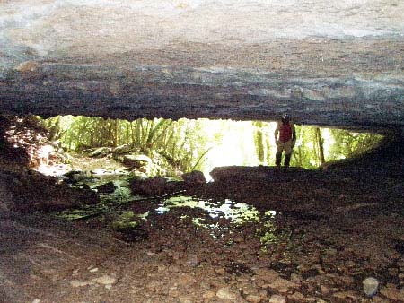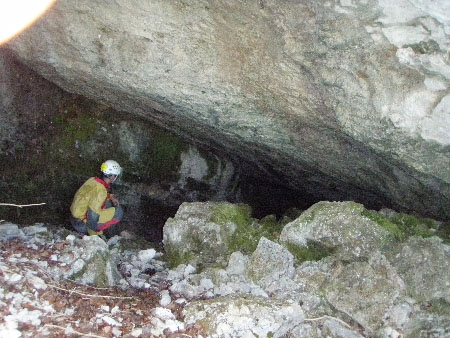 Arrêt au sommet du « petit puits » car c’est trop glissant et technique pour Mario et Evelyne (il y a une corde mais on a pas de mato). Au moins on connaît maintenant l’accès et on va y revenir.Cette petite ballade ayant permis de se dégourdir les jambes, on se déplace ensuite à la Grotte de la Fraite. Malgré la météo très estivale (il fait 32°C) cette résurgence coule encore un peu.