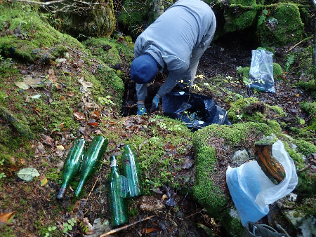Comme chaque année, des dépollutions ou des contrôles sont effectués dans le cadre de la convention DGE-ISSKA-GPV. Après une première sortie ou deux cavités ont été contrôlées (pas de nouvelle pollution), une journée a été consacrée à la dépollution de trois autres cavités.Le matin, ont s’est occupé d’une doline sur la commune de l’Abbaye qui était remplie de bouteilles, et cela malgré le fait qu’elle soit loin de tout.