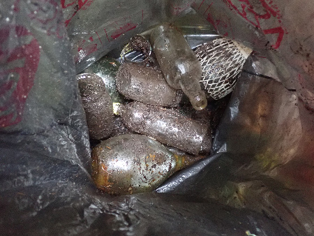 Nous sommes allés voir ensuite un petit puits dans la région du Marchairuz dont le fond contenait peu de déchets, mais les bouteilles étaient remplies d’un liquide vraiment nauséabonds. Beurk …