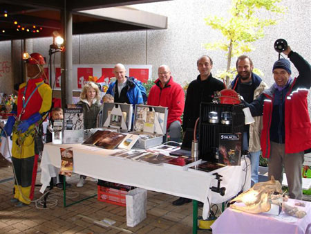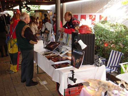 Sur le stand on avait les valises didactiques de l’ISSKA, des cubes en verre avec les grottes incrustées au laser, des revues, livres et inventaires mais pour les enfants ce sont surtout les ossements mis à disposition par Michel et le mannequin spéléo qui ont eu le plus de succès.