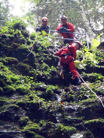 Plutôt que d’utiliser l’échelle, on commence par un exercice au descendeur