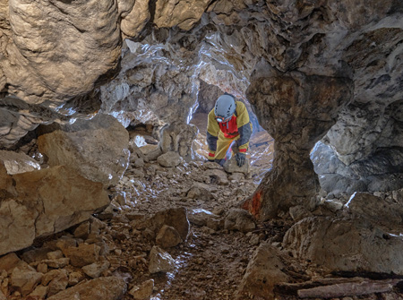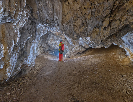 Sortie dans la très connue Grotte aux Fées à la Côte aux Fées (NE) dont on trouve les premières mentions déjà au XVIIe siècle et qui est aussi appelée « Temple des Fées« . Son accès et le couloir principal sont d’autres part aménagés pour des visites touristique, mais mieux vaut avoir le pied sûr.Aujourd’hui, le but est de faire une série de photos, ainsi que de lever une nouvelle topographie au Disto X.Dans la salle après l’entrée