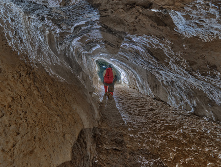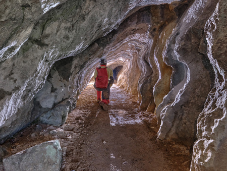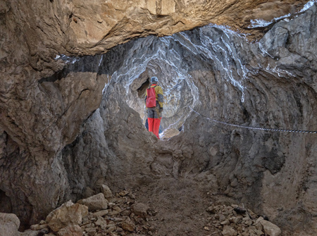 Le tronçon de galerie menant au « Nid d’Aigle » : on voit sur cette photo de belles cannelures qui entailles la paroi de droite