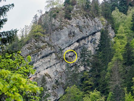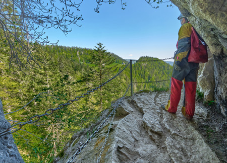 Le « Nid d’Aigle » : orifice se trouvant en pleine falaise où ici la chaîne est totalement justifiée. Mieux vaut éviter un faux pas …