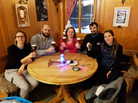 La montée, le déséquipèrent de la grotte et le retour aux voitures se font rapidement. Nous sommes tous plus ou moins frigorifiés. Pour célébrer ce beau moment de partage, petite halte autour de quelques boissons au restaurant du col.
