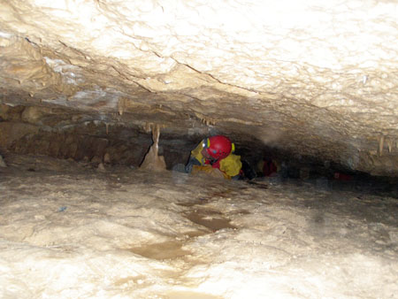 Et ensuite re-belotte à quatre pattes puis en ramping dans un laminoir et enfin de nouveau à quatre pattes. Sur ce trajet, on se fait discret afin de ne pas déranger deux chauves-souris (indéterminées).Encore une fois à plat ventre