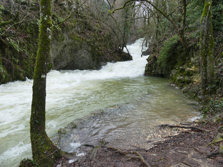 Dommage que les cavelink de la Galerie Glaisine et de la Galerie Arthur soient HS car cela aurait été intéressant de comparer les heures de la vague de crue entre ces trois stations. Lorsque nous rejoignons le véhicule, nous croisons Michel qui vient lui aussi observer la crue à la Petite Grotte; Corinne G. (SCPF) le rejoint peu après. Après une visite à la Source de l’Orbe, nous nous retrouvons ensuite tous ensemble dans un pub de Vallorbe, mais comme tout le monde est trempé jusqu’aux os nous laisseront une belle gouille autour de la table en quittant les lieux !!!Avant de rentrer à la maison, nous passons encore vers minuit à la Source de la Venoge qui elle aussi est en belle crue.Source de la Venoge le lendemain avec le torrent issu du Puits de la Venoge
