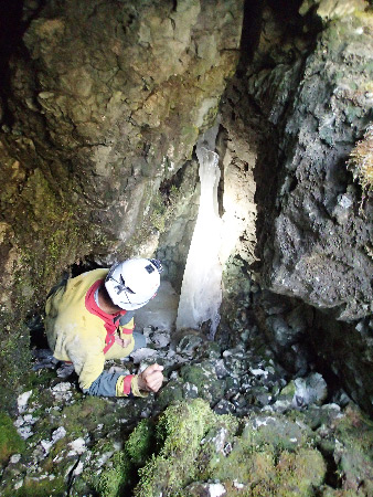 Dans le C32, coulée de glace obstruant le boyau menant au P20
