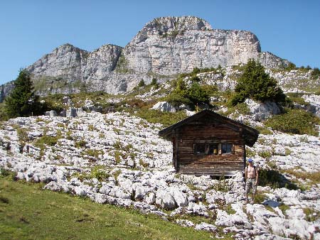 C’est par une chaleur écrasante que nous montons aujourd’hui sur le karst afin de poursuivre nos travaux, cette fois sur les zones B et C qui sont situées dans la partie orientale.Petite cabane sur Château Commun ( zone B )