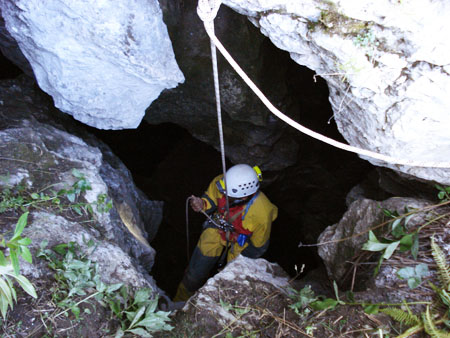 Nous redescendons ensuite dans les barres rocheuses en dessous de Pra Fleuri pour aller explorer et topographier le U6. Au fond d’une petite galerie, arrêt sur un passage à désobstruer derrière lequel on devine un puits; ça résonne et il y a du courant d’air .. bon signe !