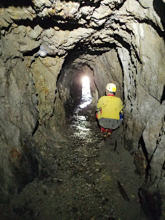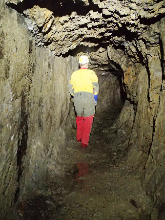 Nous trouvons finalement cette mine à proximité, mais bien cachée dans une anfractuosité des falaises et la topographie sera assez vite relevée car elle ne fait que 62 m de long.Première partie de la mine