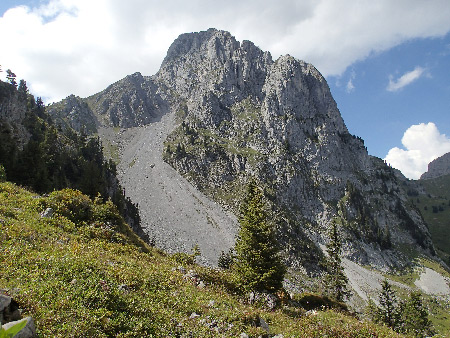 Après quoi, nous passons ensuite sur le versant sud où là aussi rien n’est trouvé à la base des parois.Versant sud de la Pointe de Sur Combe