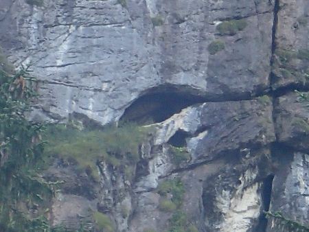 Finalement, les seules ouvertures repérées sont localisées dans la paroi nord de la Tête de l’Ane, mais pour y accéder c’est une autre histoire car elles se trouvent en pleine falaise.Un des orifices en pleine falaise sur le versant nord de la Tête de l’Ane
