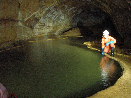 Après quoi, une équipe poursuit la visite jusqu’au terminus de la Galerie de la Boue tandis que quatre autres reviennent en arrière. La sortie se fera à un rythme plus soutenu car nous n’avons pas pris de néoprène et ça commence à cailler suite aux bains successifs La visite terminée, les uns vont rentrer au bercail tandis que trois irréductibles iront encore flâner avant de se faire une bonne bouffe.Jack