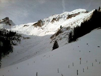Les conditions sont idéales pour la prospection hivernale et la recherche des trous souffleurs. Après quelques hésitations, me voilà parti en Gruyère pour l’Urqui et le Vanil des Artses. J’y monte depuis Orgevaux, avec la route déneigée jusqu’à 1264 mètres. Le Vanil des Artses est toujours aussi impressionnant, avec des avalanches énormes qui sont descendues sur toutes la face depuis le sommet.